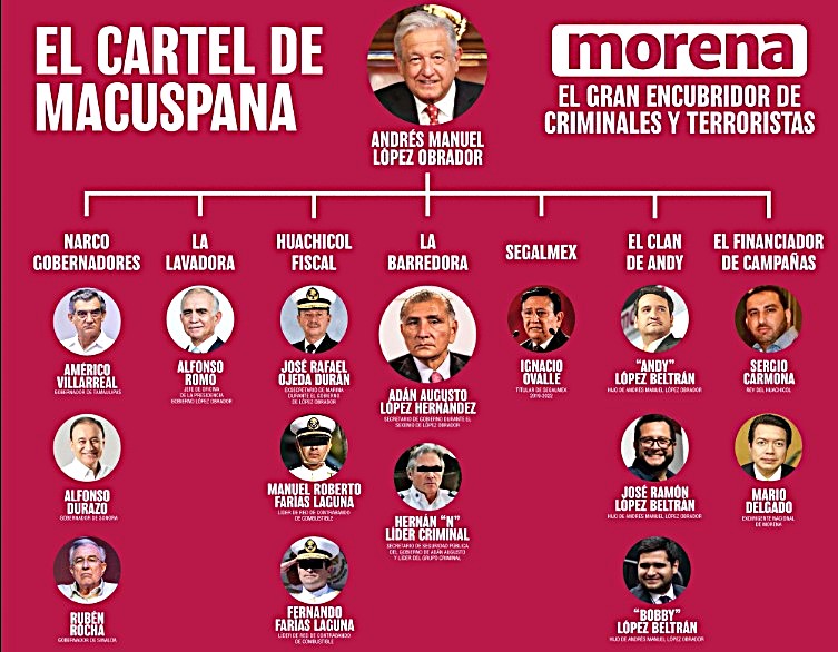 También exigió que el «narco senador» solicite licencia para ser investigado. De igual forma, señaló a los hijos de AMLO (Andy, Bobby y José Ramón) como «lo más corrupto que le ha sucedido al país», a quienes responsabilizó de ser los principales operadores del «huachicol fiscal», un fraude que asciende a 500 mil millones de pesos. Además, mencionó investigaciones abiertas por el Departamento de Justicia de Estados Unidos contra otros morenistas por vínculos criminales, como al gobernador de Tamaulipas, Américo Villarreal, al de Sinaloa, Rubén Rocha y a la de Baja California, Marina del Pilar, por citar algunos.